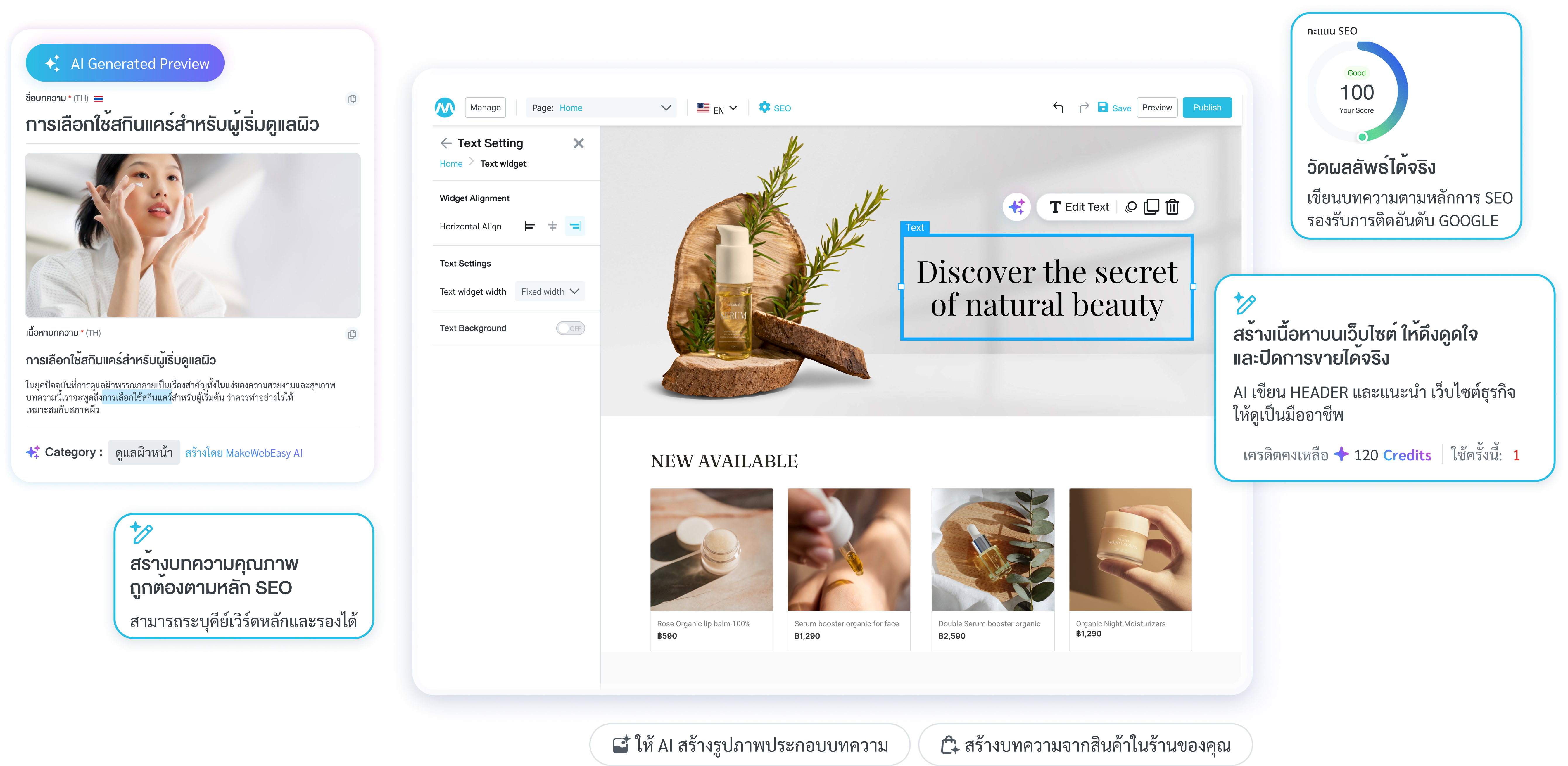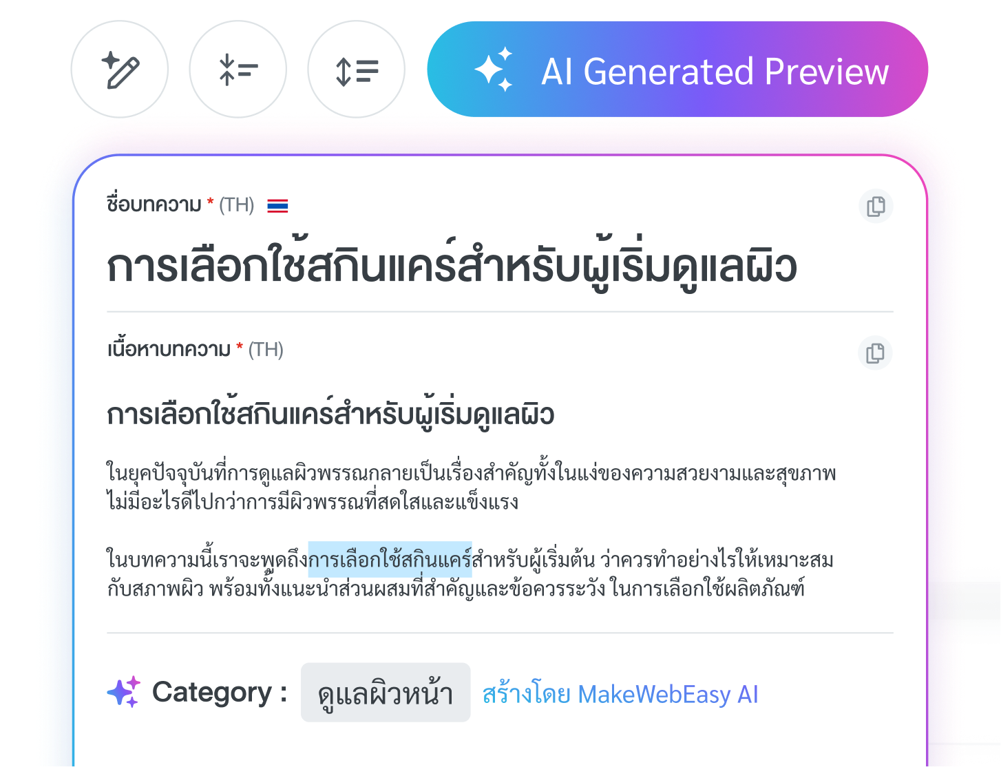 ระบบ AI ช่วยประเมินคะแนน SEO ตรวจสอบโครงสร้าง เนื้อหาและคีย์เวิร์ดให้โดยอัตโนมัติ เพื่อให้มั่นใจว่า ทุกคอนเทนต์ของคุณมีประสิทธิภาพสูงสุดและพร้อมติดอันดับการค้นหา